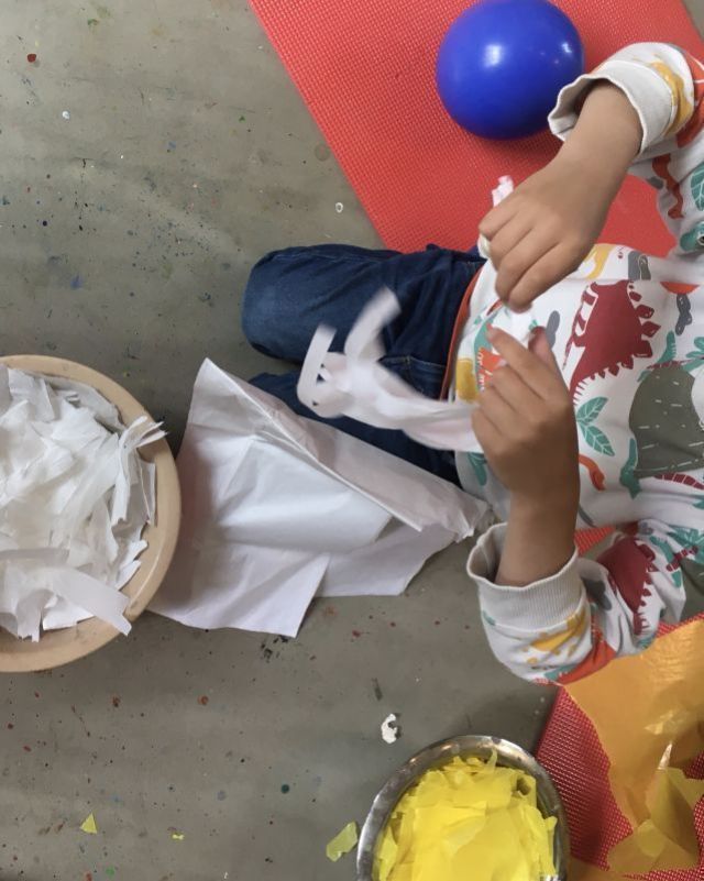 Es entsteht ein freier Experimentierraum zum Formen, Klecksen, Kneten, Matschen, Malen …