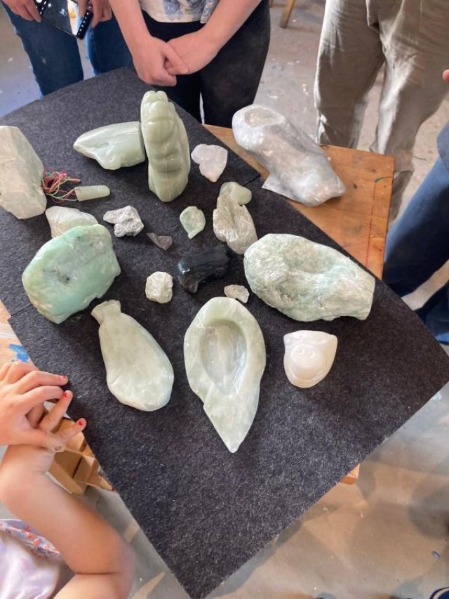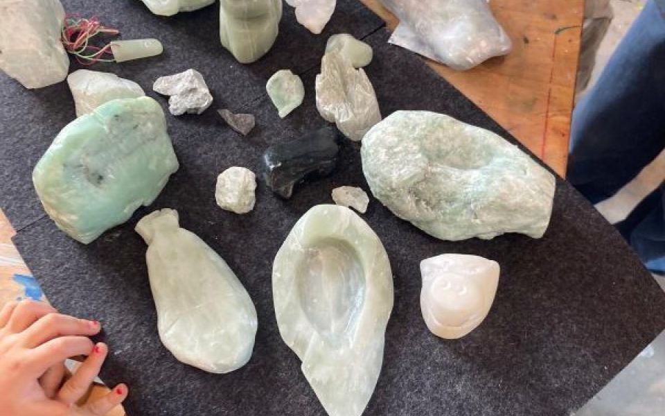 Mit künstlerischen Techniken, Material und Werkzeug stehen wir euch zur Seite. Dabei ist jeder Ausdruck und jede Idee erwünscht. Ihr seid eingeladen zur Bildhauerei mit Speckstein. Aufgrund der weichen Struktur lässt sich der Stein mit Sägen, Feilen und Schleifwerkzeug gut bearbeiten. Nachdem die Grundform erscheint, wird die Oberfläche glatt gearbeitet und zum Schluss mit Steinöl verfeinert. Es entstehen z.B. kleinere Skulpturen, Figuren, Tiere, Schalen, Kerzenhalter, Glücksbringer oder Schmuck.